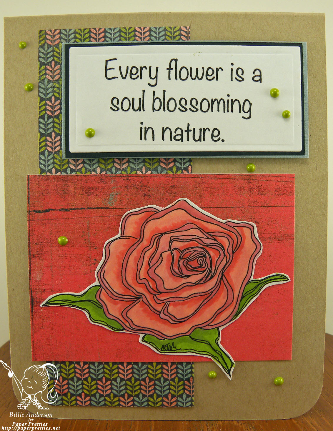 I chose to use the Tea Rose digi (sorry couldn't find it in the store :( to link it, I thought if I colored it similar to the background paper I chose, that the sentiment would stand out.. so it would fit the challenge of "sentiment as the focal point"
